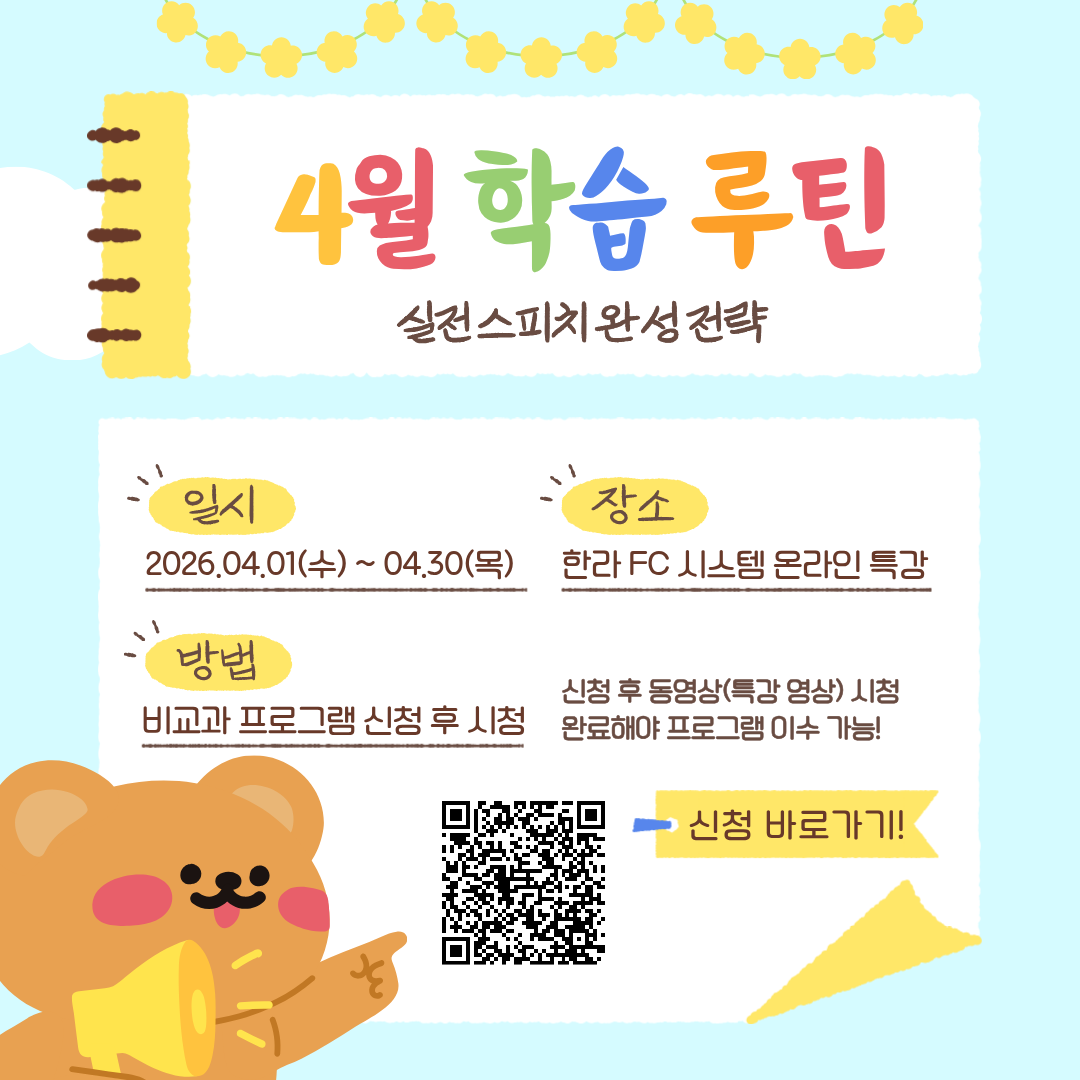 ③ 교수학습지원센터 → 월간 학습 루틴(4월) 신청 후 시청하기 [신청 바로가기]